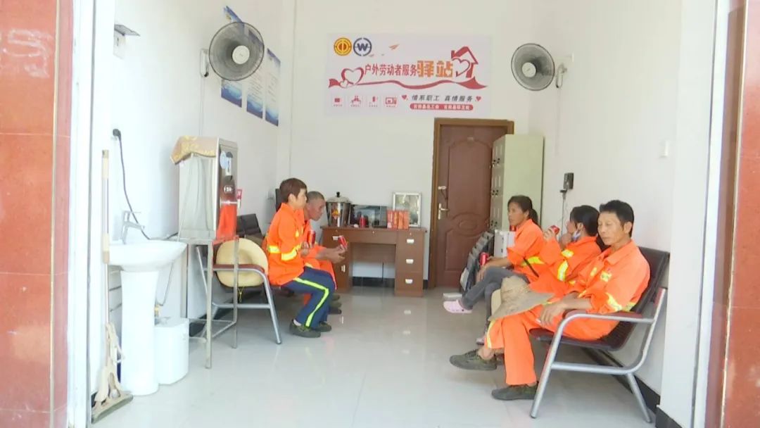 近日,記者在古田縣大世界“環衛驛站”看到,幾個環衛工人在忙完工作后來到這里稍作休息,“環衛驛站”的設立讓城市“美容師”有了“暖心港灣”。