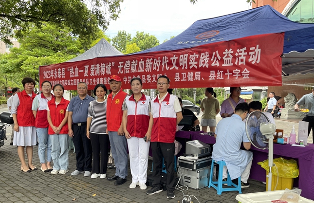 文明風7月26日訊 為進一步推動無償獻血工作持續健康發展,動員全社會力量參加無償獻血,緩解夏季血液供需矛盾,更好地保障人民生命安全。7月24日,永泰縣委文明辦、縣衛健局、教育局、紅十字會等多家單位聯合開展了“熱血一夏·愛滿樟城”無償獻血活動。
