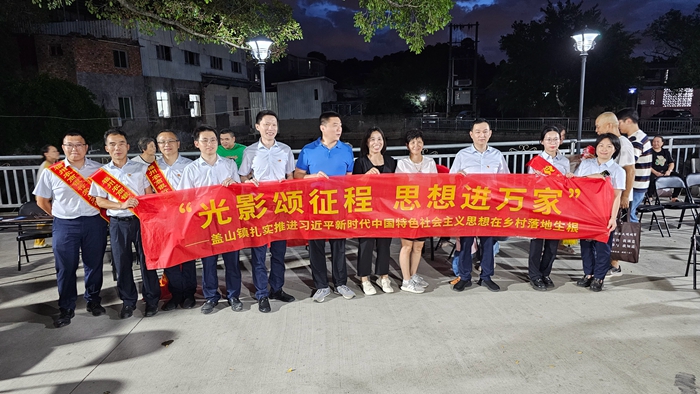 文明風(fēng)7月28日訊 為先行融入學(xué)習(xí)貫徹習(xí)近平新時代中國特色社會主義思想主題教育。7月23日晚,由中共蓋山鎮(zhèn)委員會主辦的“光影頌征程 思想進(jìn)萬家”系列主題活動第一站在蓋山鎮(zhèn)齊安村舉辦。