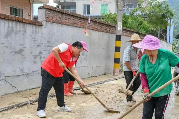 昨日中午,在鑒江鎮(zhèn)鑒江村,村里的黨員干部和村民拿起掃把、抄起鏟子,將堆積的淤泥、雜物一趟一趟運出。