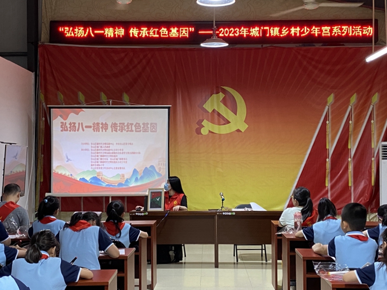 文明風8月2日訊 為弘揚“八一”精神,賡續紅色血脈,加強未成年人德育建設工作,營造尊崇軍人崇尚英雄的濃厚氛圍,8月1日,“弘揚‘八一’精神 傳承紅色基因”——2023年城門鎮鄉村少年宮系列活動在倉山區城門鎮新時代文明實踐所舉辦。