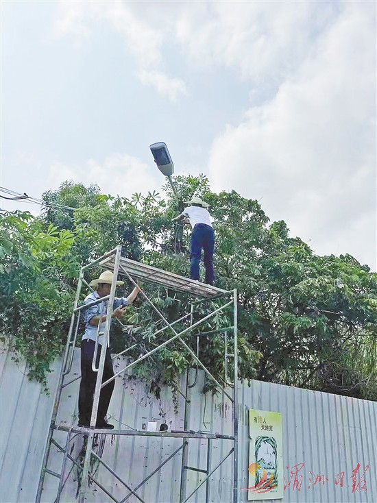會后,記者隨黃秋榮趕到林峰街核實信息。路燈架設在樹木間,附近的居民證實,近來多雨,路燈不亮,夜間出行不便,存在安全隱患。黃秋榮馬上聯系電工,當日午間,電工趕來現場維修。