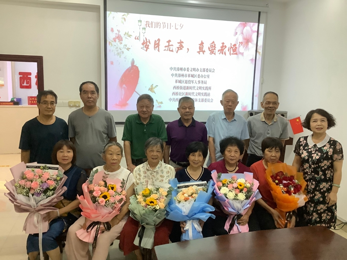 “七夕”鵲橋會,金婚銀婚喜相逢。為進一步傳承和弘揚中華優秀傳統文化,在全社會引導樹立正確的婚念觀、家庭觀。8月21日下午,漳州市委文明辦支部委員會、中共漳州市薌城區委辦公室、薌城區退役軍人事務局、西橋街道新時代文明實踐所、西橋社區新時代文明實踐站、中共西橋社區離退休支部委員會聯合舉辦“歲月無聲,真愛永恒”七夕活動在西橋社區舉行,活動邀請了轄區內的老年夫妻來參與活動。