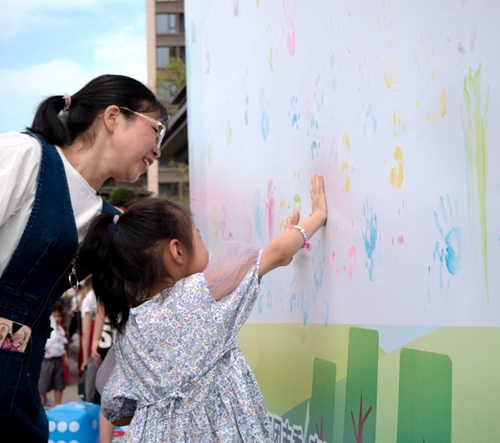 社區(qū)居民在活動展板留下手印 張俁辰 攝