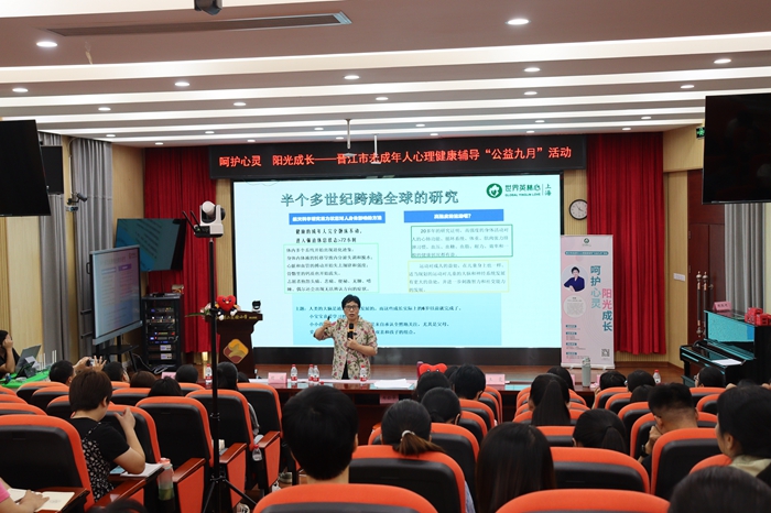 “公益九月”活動就特別邀請分享嘉賓、華師大心理學博士胡娟教授,先后走進晉江職校、英林中學、晉江市實驗中學、晉江市第二實驗小學,分別舉行主題豐富的講座,并為大家關切的心理議題答疑解惑。