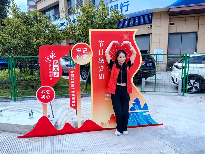 在黨建宣傳“節(jié)日感黨恩”打卡區(qū)合影(倉山區(qū)委文明辦 供圖)
