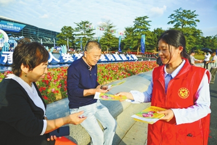 更多的志愿者在各自崗位上心系大會——在景區景點,志愿者輪流值守,常態化為游客提供茶水、問詢、應急救助等志愿服務;在地鐵站點和十字路口,志愿者熱心服務行人,勸導不文明交通行為;在河畔,志愿者撿拾垃圾、宣傳生態文明知識;在社區村鎮,志愿者勸導不文明行為……