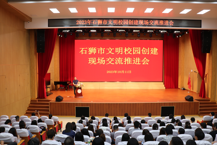 文明風(fēng)10月16日訊 為深入學(xué)習(xí)貫徹落實黨的二十大精神和習(xí)近平總書記關(guān)于未成年人思想道德建設(shè)工作的系列重要講話精神,深化文明校園創(chuàng)建工作,提升石獅市文明校園創(chuàng)建工作水平,10月11日,石獅市委文明辦、市教育局聯(lián)合組織召開文明校園創(chuàng)建現(xiàn)場交流推進(jìn)會。石獅市委宣傳部副部長、文明辦主任蔡振宇出席會議并講話,石獅市各級文明校園及新申報對象共130人參加。會議由石獅市市直教育系統(tǒng)黨委副書記、紀(jì)委書記邱天生主持。