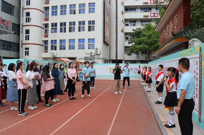 實地觀摩實驗中學(xué)附屬小學(xué)文明校園創(chuàng)建工作成果。石獅市委文明辦供圖