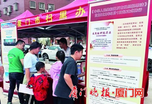 同時,廈門市掃黑辦也在現場開展常態化掃黑除惡及《反有組織犯罪法》普法宣傳活動。通過成果展示、有獎問答、發放宣傳資料等方式,將法律知識送到群眾身邊,鼓勵群眾踴躍檢舉揭發有組織犯罪線索,為建設平安廈門、法治廈門貢獻力量。
