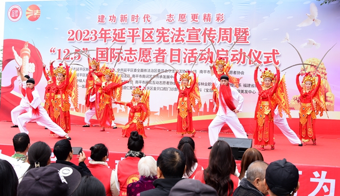 文明風(fēng)12月4日訊 12月3日,由延平區(qū)新時(shí)代文明實(shí)踐中心、延平區(qū)委全面依法治區(qū)委員會(huì)守法普法協(xié)調(diào)小組、南平市閩北互動(dòng)志愿者協(xié)會(huì)主辦,延平區(qū)委文明辦、延平區(qū)司法局、南平市南詞藝術(shù)傳承發(fā)展中心承辦的“建功新時(shí)代,志愿更精彩”2023年延平區(qū)憲法宣傳周暨“12·5”國際志愿者日活動(dòng)啟動(dòng)儀式在延平區(qū)中心文化廣場(chǎng)隆重舉行,延平區(qū)政協(xié)副主席黃志紅出席儀式并致辭。