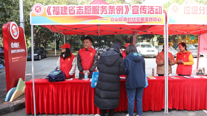 在志愿服務(wù)展示區(qū),倉山區(qū)的志愿者們現(xiàn)場開展了《福建省志愿服務(wù)條例》宣傳、“移風(fēng)易俗”宣傳、“垃圾分類”宣傳、中醫(yī)義診以及義剪等志愿服務(wù)活動。