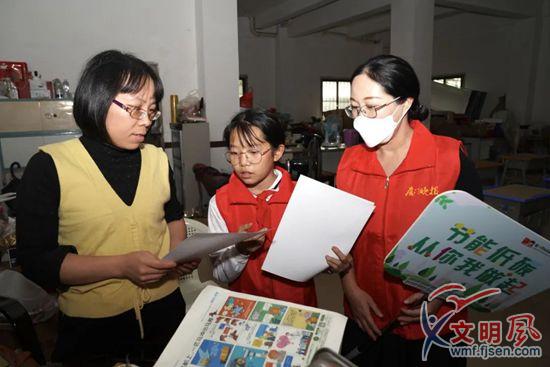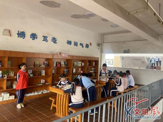 文明小小督導員宣導文明閱讀。(同安區委宣傳部供圖)