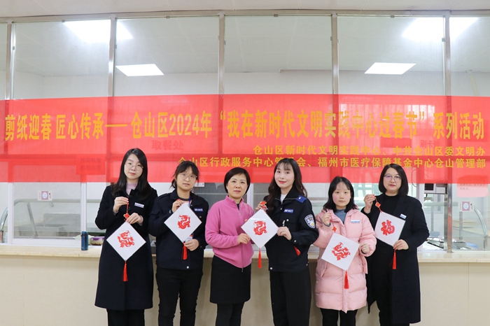 文明風1月25日訊 玉兔辭舊春華啟,龍騰新歲萬象新。為傳承弘揚中華優秀傳統文化,聚焦非遺保護,1月23日下午,倉山區新時代文明實踐中心、中共倉山區委文明辦、倉山區行政服務中心管委會、福州市醫療保障基金中心倉山管理部,在倉山區行政服務中心管委會新時代文明實踐站共同舉辦“剪紙迎春 匠心傳承”——倉山區2024年“我在新時代文明實踐中心過春節”系列活動,拉滿新年氛圍感。
