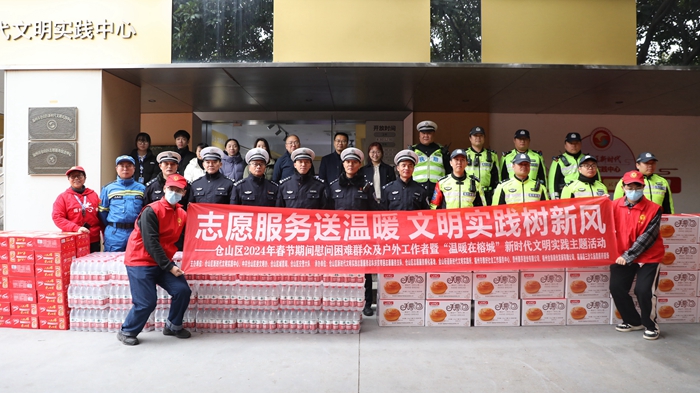 活動結(jié)束后,活動主辦方還分別前往倉前街道新時代文明實踐所、城門鎮(zhèn)新時代文明實踐所、下渡街道新時代文明實踐所等地開展倉山區(qū)2024年春節(jié)期間慰問困難群眾及戶外工作者暨“溫暖在榕城”新時代文明實踐主題活動,關心了解他們的困難以及需求,并送上暖心的春節(jié)祝福。本次慰問活動集中慰問群眾90人,并組織志愿者到路面為環(huán)衛(wèi)工人、交警(輔警)、建筑工人、電力維修工人、外賣員、快遞員等一線戶外工作者送上暖心祝福。此次活動共計發(fā)放面包、礦泉水、八寶粥等慰問物資420箱。