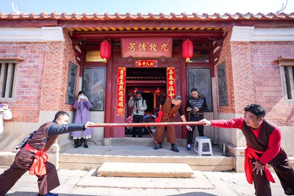 “叱咤風云,保我海疆”。在古城北門、西門、南門、東門,威風凜凜的甲胄武士戍守及巡城隊伍巡游受到市民游客的喜愛,戚家軍鴛鴦陣法表演進一步展示了古城武備文化的精氣神。