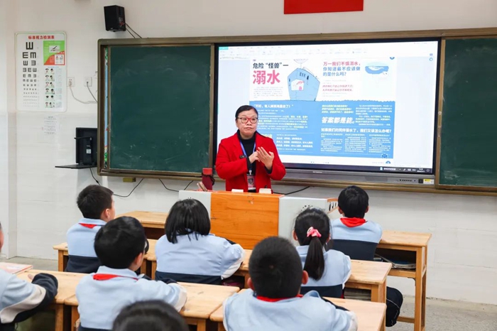 周美蘭正在給學生上“少年急救官”生命教育安全課