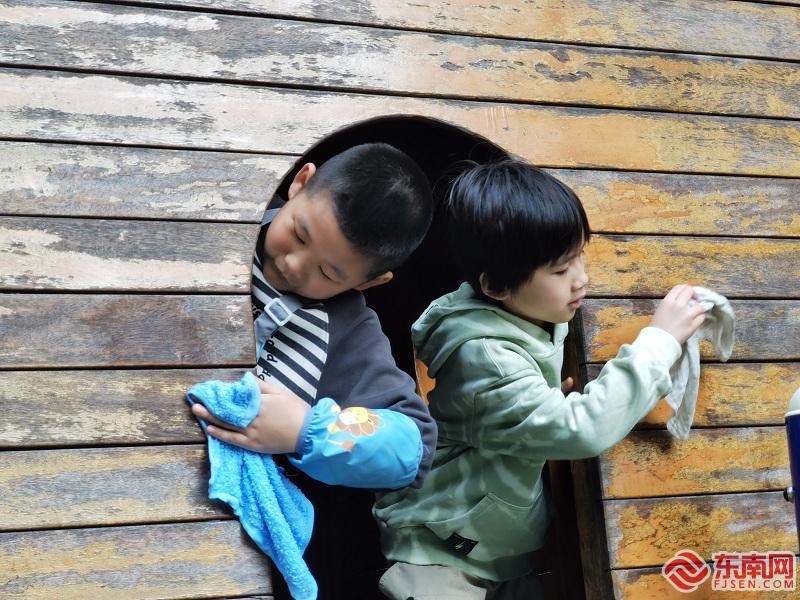 幼兒開(kāi)展衛(wèi)生勞動(dòng)。福建幼高專附屬象園幼兒園供圖