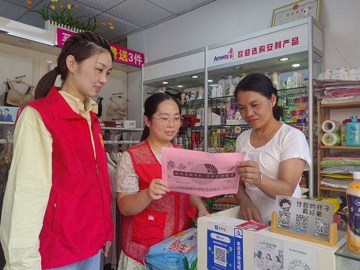 芝山街道志愿者到轄區商戶發放移風易俗宣傳資料(芝山街道 供圖)
