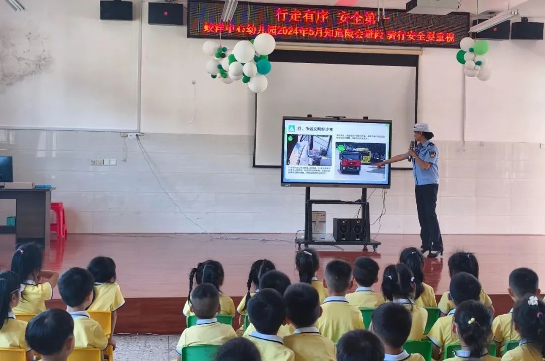5月29日,蛟洋鎮“晚”安交通志愿服務隊利用“六一”兒童節契機,攜同縣公安局交警大隊古蛟中隊以及鎮道安辦、團委到蛟洋中心幼兒園開展“行走有序 安全第一”的交通安全伴我行活動。