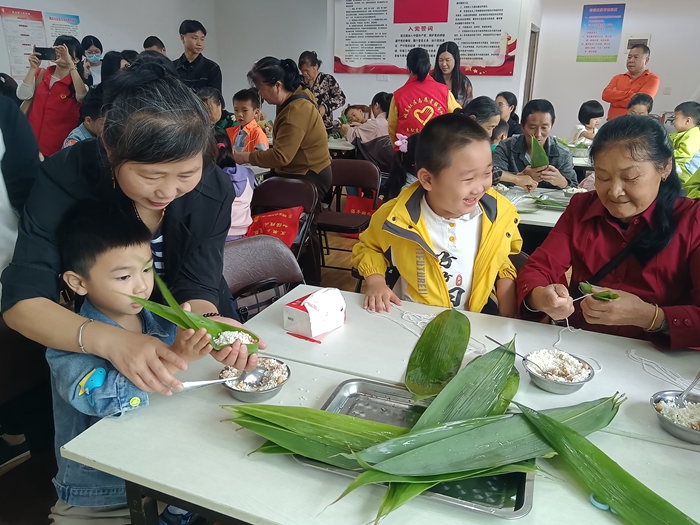 城東社區新時代文明實踐站開展“巧手包粽迎端午 垃圾分類護家園”家校社協同共育親子活動