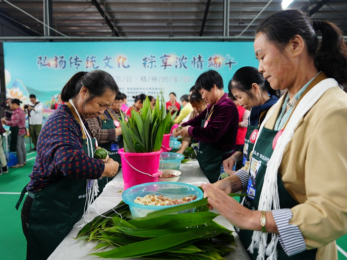 活動中,明溪縣公安局組織刑偵、交警、禁毒、出入境等多個警種部門以“普法小課堂”、有獎競答、典型案例解說、發放宣傳資料等形式向群眾普及相關法律知識,重點開展禁毒、防范電信網絡詐騙、防范道路交通事故、嚴打非法出入境等法治宣傳教育,進一步提高社區群眾的法治觀念和防范意識,引導群眾遵守法律法規,共同營造安全、文明、和諧的社會治安環境。隨后,由全縣各社區居民代表30人組成的6支隊伍進行包粽子比賽,經驗豐富的居民巧手翻飛、動作流暢,一折葉,二放料,三壓實,四封口,五扎繩,一會兒工夫,精美的粽子堆滿了桌子。現場歡聲笑語不斷,洋溢著濃濃的節日氛圍。