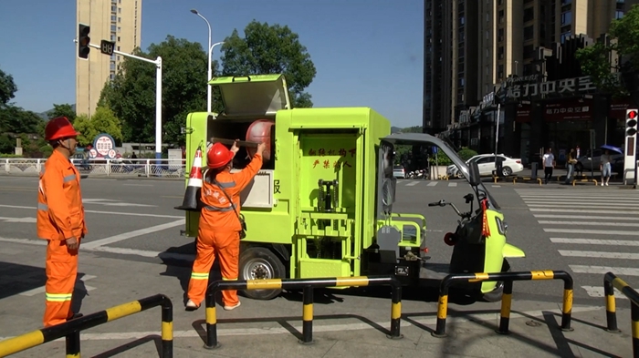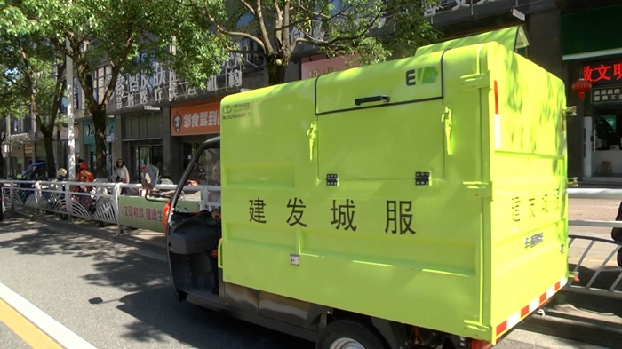 每天,幾輛涂裝統一的綠色垃圾收運小車,穿行于大街小巷,用語音播報提醒商戶,及時投放分類好的生活垃圾。工作人員回收垃圾的同時,做好消殺工作,防止滋生細菌、蚊蟲孽生。