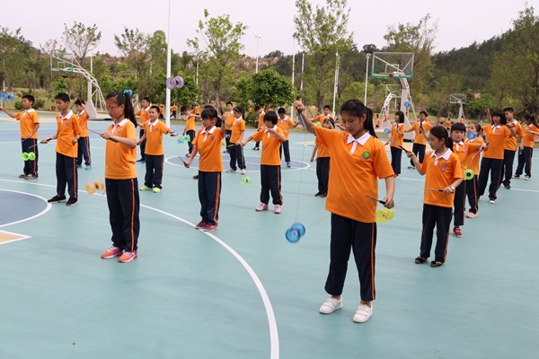 同學們正在抖空竹。泉州聚龍外國語學校 供圖