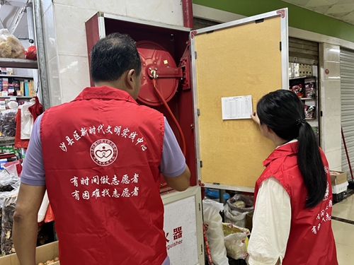 沙縣區(qū)市民文明觀察團(tuán)查看農(nóng)貿(mào)市場內(nèi)消防設(shè)施情況