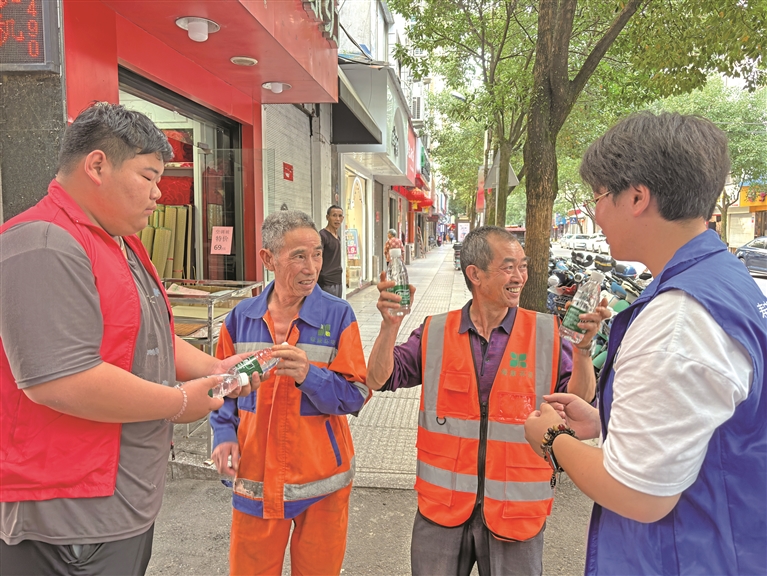 在生活垃圾分類收集屋,大家一起觀摩設(shè)施并親身體驗(yàn)垃圾分類處理環(huán)節(jié)等工作,壽寧縣城市管理和綜合執(zhí)法局工作人員向大家科普了垃圾分類小知識(shí),并介紹了開展垃圾分類的意義。隨后,志愿者來到街頭,為在高溫下開展城市清潔的環(huán)衛(wèi)工人送去礦泉水、扇子及降暑藥等,同時(shí),志愿者化身“環(huán)衛(wèi)使者”,與環(huán)衛(wèi)工人一同開展美麗家園活動(dòng),用實(shí)際行動(dòng)感謝環(huán)衛(wèi)工人的辛勤付出。(閩東日報(bào)記者 張文奎 通訊員 葉雨晴 文/圖)