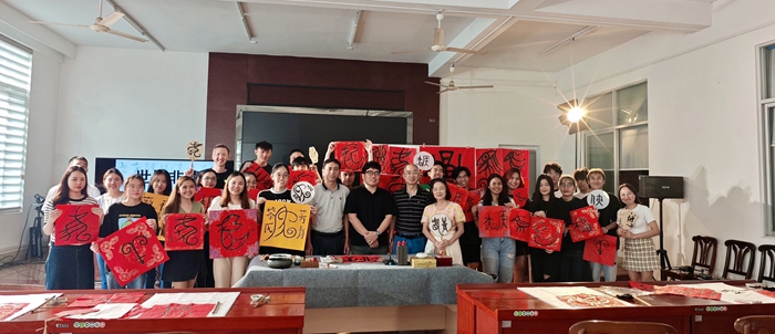 活動(dòng)邀請(qǐng)臺(tái)灣藝術(shù)大學(xué)博士、中國(guó)文藝評(píng)論家協(xié)會(huì)會(huì)員、福建省美術(shù)家協(xié)會(huì)理論委員會(huì)委員、漳州市青年美術(shù)家協(xié)會(huì)副主席劉北一,為閩南師范大學(xué)俄羅斯籍、馬來(lái)西亞籍留學(xué)生,講述中國(guó)書(shū)法藝術(shù)悠久的發(fā)展歷史,從文字學(xué)的視角闡釋中國(guó)象形文字于時(shí)空發(fā)展演進(jìn)中的文化、藝術(shù)及時(shí)代價(jià)值,分享中國(guó)書(shū)法藝術(shù)的美學(xué)觀念。