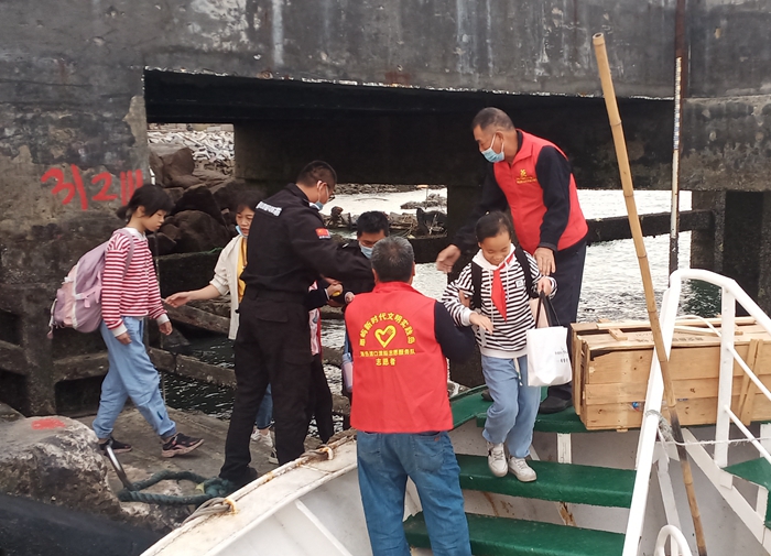 “每周一上午、周五下午值守渡口,引導孩子們排好隊、有序上船,一路護送孩子安全上學,平安回家”,實踐島的志愿者肖先生長期堅持在渡口開展“海上送學”志愿服務活動,守護孩子上學“路”,讓家長們備感暖心。