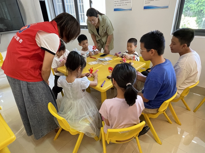 志愿者教小朋友們制作電風扇。福州文明網供圖