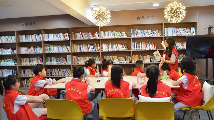 來自福州市少年兒童圖書館的志愿者講授圖書分類知識。福州文明網供圖