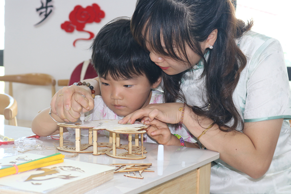 我在新時代文明實踐中心過七夕活動之親子DIY。沈立瑤 攝