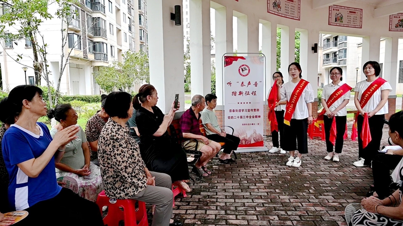 建陽區崇泰街道嘉禾社區,居民們正專心聽著宣講員宣講黨的二十屆三中全會精神。黃慧聰 攝