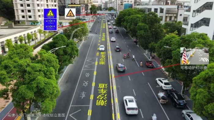 據介紹,“潮汐車道”屬可變車道一種,是指根據早晚交通流量的不同情況,對有條件的道路設置一條或多條車輛行駛方向隨不同時段而變化的車道。車道的行駛方向和功能不再固定、單一,而是可以根據交通流量進行優化調整。