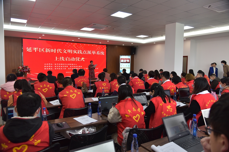 2022年3月2日,延平區(qū)新時(shí)代文明實(shí)踐點(diǎn)派單系統(tǒng)上線啟動(dòng)儀式。南平市委文明辦供圖
