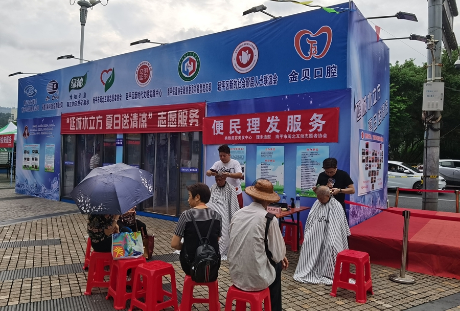 2023年7月,延平區(qū)新時(shí)代文明實(shí)踐中心等聯(lián)合開展“延城水立方 夏日送清涼”志愿活動(dòng)。南平市委文明辦供圖