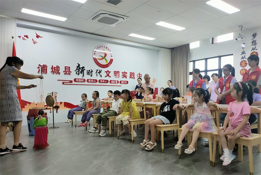 2023年7月25日,浦城縣新時(shí)代文明實(shí)踐中心開展“小城有愛”新時(shí)代文明實(shí)踐小課堂活動(dòng),在浦城縣新時(shí)代文明實(shí)踐中心開設(shè)市級(jí)非遺項(xiàng)目提線木偶課。南平市委文明辦供圖