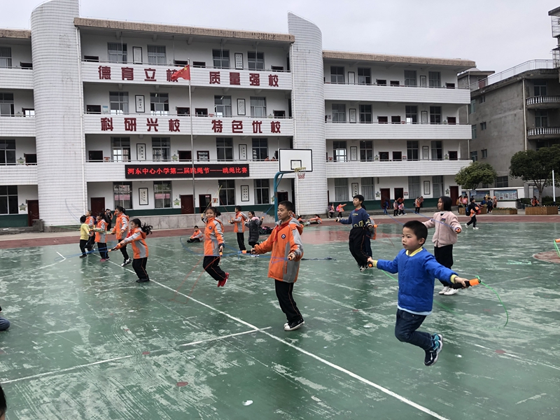 在跳繩社團(tuán),一群孩子邊聽(tīng)詩(shī)歌邊跳繩,隨著詩(shī)詞的韻律和內(nèi)涵自然伸展四肢與軀體,在優(yōu)美的詩(shī)歌旋律中跳動(dòng)起來(lái),展演得酣暢淋漓,令人賞心悅目,又讓人躍躍欲試,既鍛煉身體又愉悅身心。這些跳繩操是社團(tuán)老師根據(jù)詩(shī)詞的韻律和詩(shī)詞含義獨(dú)創(chuàng)的絕技,通過(guò)組建興趣隊(duì)伍,強(qiáng)化訓(xùn)練,孩子們?cè)诖笳n間中歡跳,在體育課上展演,在陽(yáng)光體育活動(dòng)中展示,在跳繩節(jié)中競(jìng)賽,“詩(shī)歌運(yùn)動(dòng)”成為校園一道靚麗的風(fēng)景線。