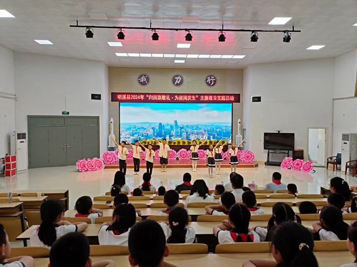在莊嚴的國歌聲中,鮮艷的五星紅旗冉冉升起,全校師生肅立齊唱國歌,莊嚴的升旗儀式拉開了活動序幕。情景劇表演《五星紅旗背后的故事》通過生動的故事情節和演員們的精彩演繹,深刻表達了孩子們對五星紅旗的敬仰和愛國情感;經典誦讀《詩意中國》表達了孩子們對祖國的熱愛和對美好生活的向往;合唱《黨的關懷親親的哩》孩子們用親切自然的聲音演唱,表達了對黨的感激之情,現場鮮艷的五星紅旗一起舞動,匯成一片紅色的海洋。學生們還積極參與了省委文明辦策劃的2024年“向國旗敬禮”網絡文明傳播活動,向偉大的祖國送上祝福。(明溪縣委文明辦)