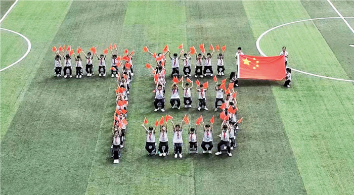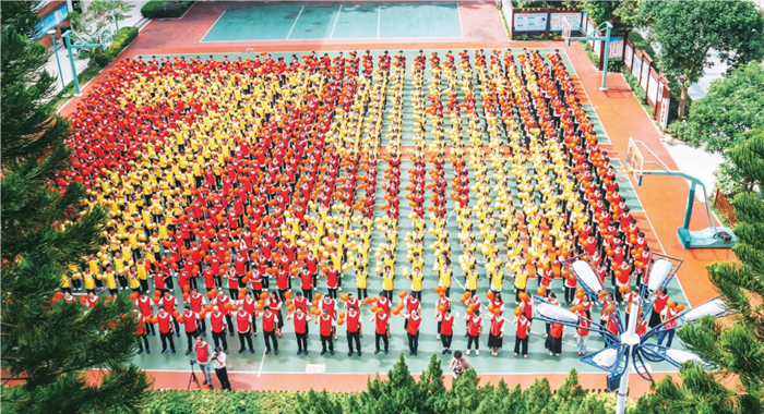 9月30日上午,伴隨著悠揚(yáng)的小提琴聲,平潭城關(guān)中學(xué)900名師生整齊列隊(duì),手持黃色與紅色氣球擺出“75”的字樣,表達(dá)了對(duì)祖國75年來發(fā)展成就的贊美和對(duì)未來美好生活的憧憬。