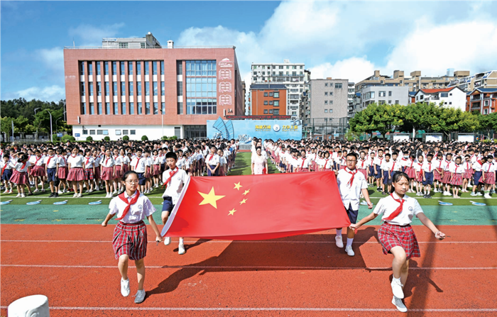 平潭城關(guān)中學(xué)校長詹志雄介紹,本次活動(dòng)以“砥礪奮進(jìn)新征程,我與祖國共奮進(jìn)”為主題,旨在弘揚(yáng)愛國主義精神,增強(qiáng)師生的國家認(rèn)同感和民族自豪感。(平潭融媒體中心 馮榮)