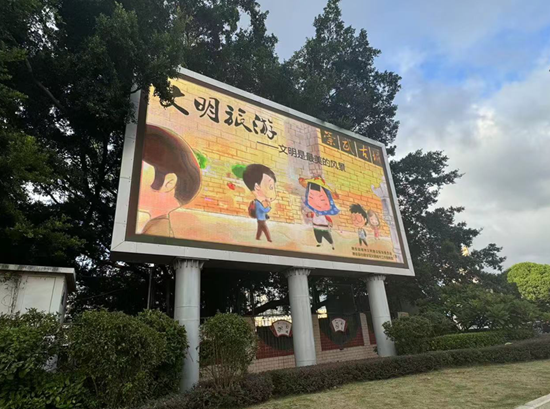 利用主要路口LED屏幕播放文明旅游公益廣告 惠安縣委文明辦供圖