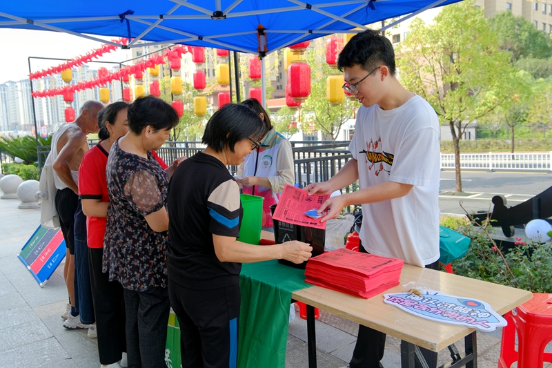 青年志愿者們擺攤設點與社區居民開展生態文明普及互動。南平團市委供圖