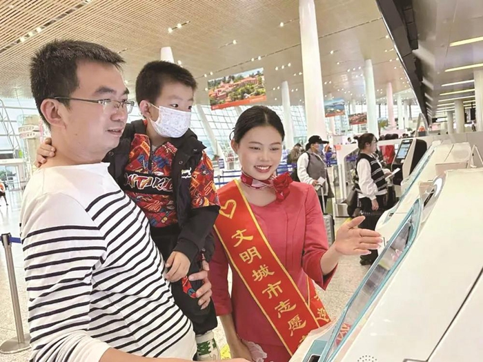在廈門,不論在火車站還是景區,總有“紅馬甲”志愿者迎上前,為游客服務。(廈門市委文明辦供圖)
