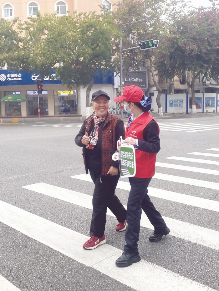 廈門市委文明辦倡導開展“招招手、您先行,揮揮手、快步走”志愿服務活動,街頭多了一道“禮讓斑馬線”的文明風景線。(廈門市委文明辦供圖)