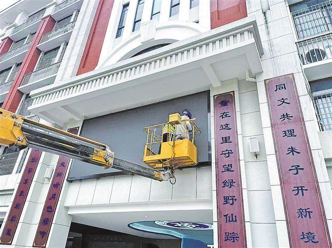 專業檢測隊伍進校園,嚴格檢測LED顯示屏、展示板等戶外廣告設施。(同安區城市管理和綜合執法局 供圖)