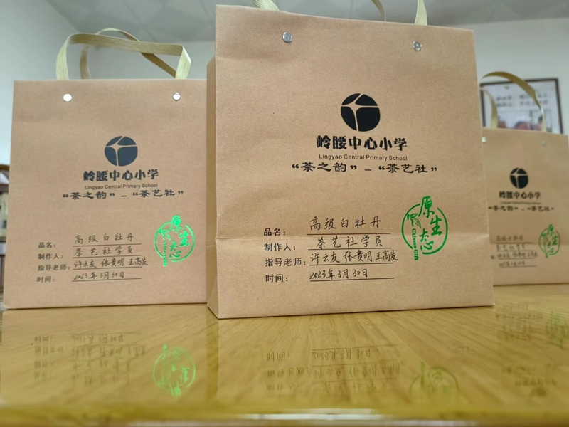 在政和縣嶺腰中心小學(xué)鄉(xiāng)村學(xué)校少年宮,由社團(tuán)學(xué)生制作的政和白茶尤為引人注目,每款茶葉包裝上都標(biāo)注了制作時間、制茶人及指導(dǎo)老師。